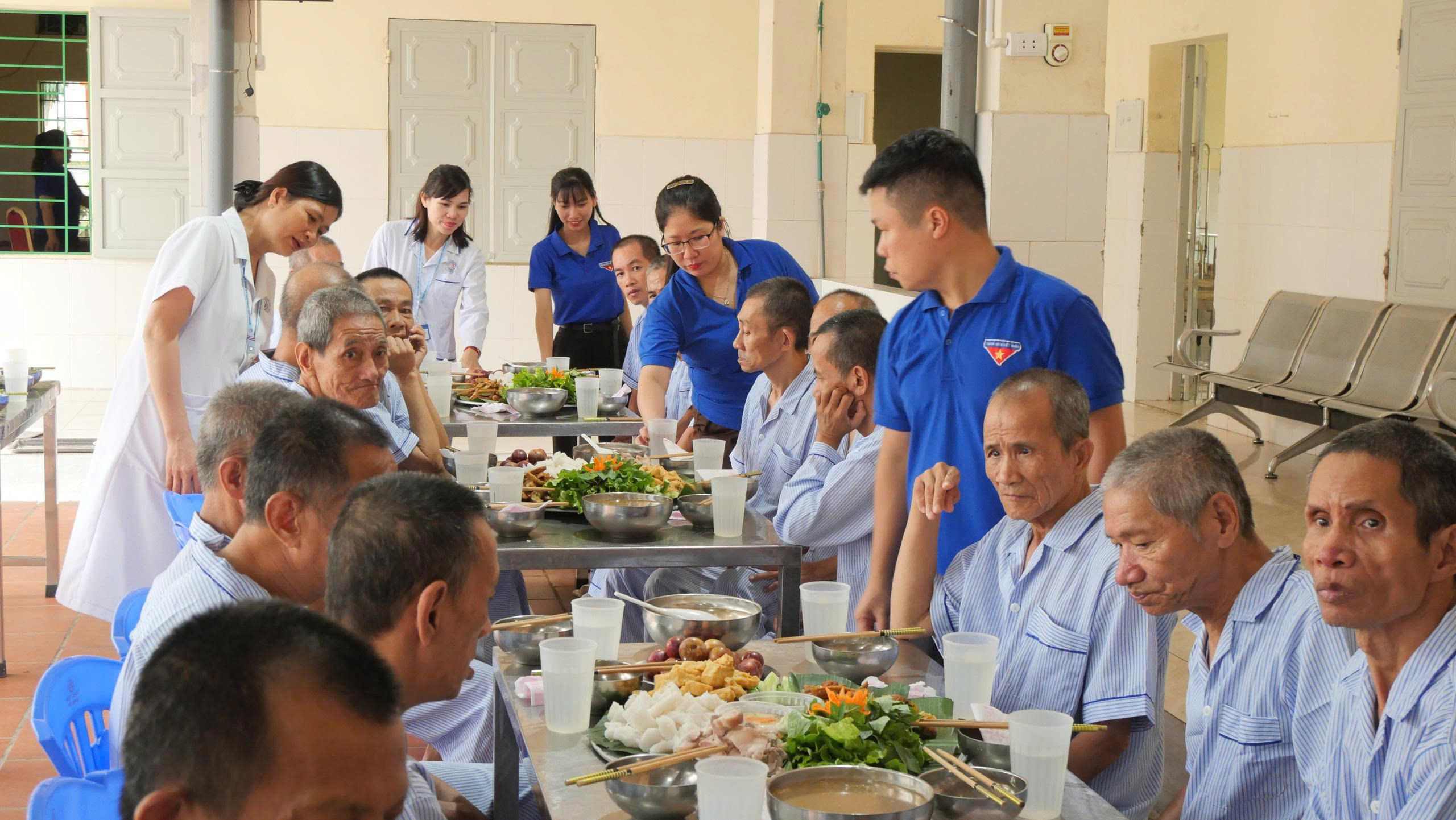 Không chỉ là một bữa ăn ngon, chương trình còn tạo nên bầu không khí ấm cúng và gần gũi. Những nụ cười, những lời hỏi han ân cần từ đội ngũ cán bộ, đoàn viên thanh niên khiến người bệnh cảm nhận rõ tình thương, sự quan tâm, sẻ chia. Người bệnh hào hứng, vui vẻ và ăn ngon miệng hơn trong không khí vui tươi, phấn khởi của buổi trưa đặc biệt.