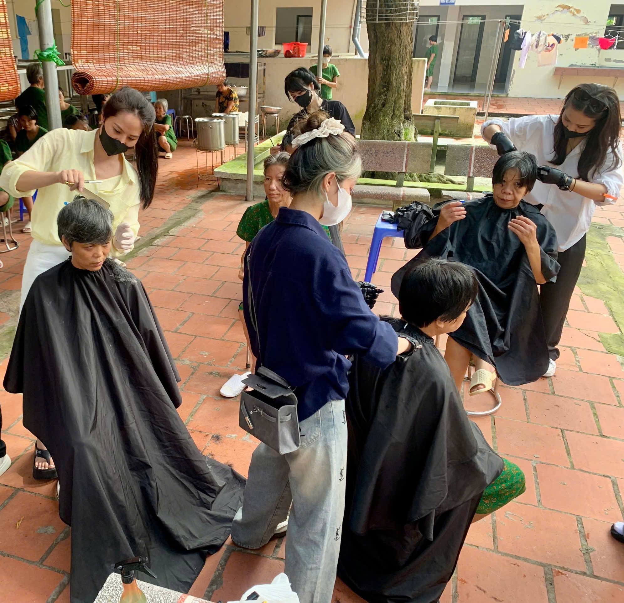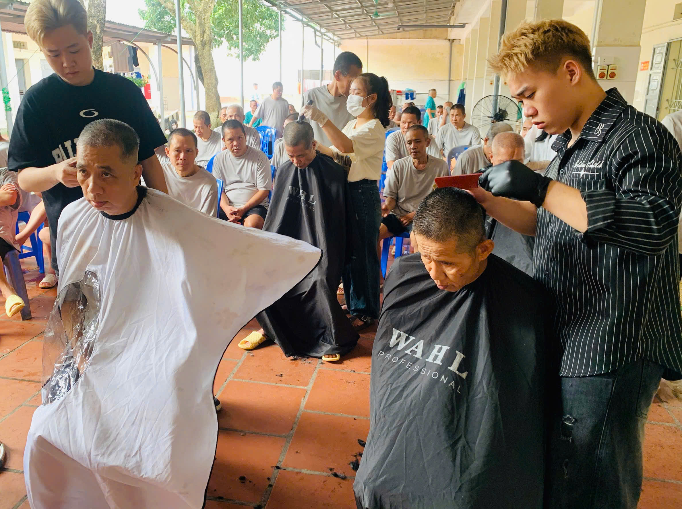 Bên cạnh đó, các tình nguyện viên còn tận tình cắt tóc miễn phí cho hàng trăm đối tượng tại Trung tâm. Những mái tóc được cắt gọn gàng, sạch sẽ không chỉ giúp người bệnh thêm phần chỉn chu, tự tin mà còn thể hiện sự chăm sóc, trân trọng đối với mỗi con người nơi đây.