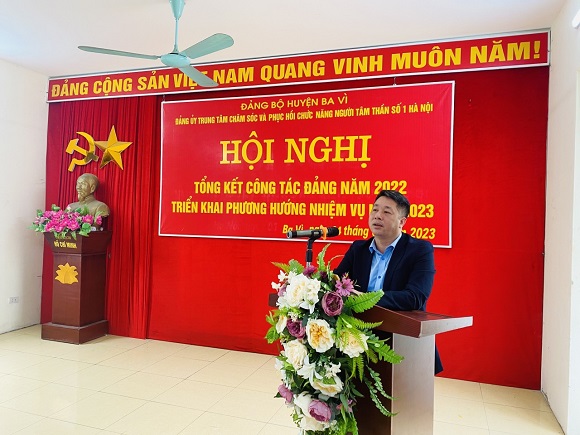 Thực hiện chương trình công tác Đảng, chiều ngày 04/01/2023, Đảng bộ Trung tâm Chăm sóc và Phục hồi chức năng người tâm thần số 1 Hà Nội tổ chức Hội nghị tổng kết công tác Đảng năm 2022 và triển khai phương hướng, nhiệm vụ năm 2023. Dự hội nghị có đồng chí Nguyễn Đức Phong – Bí thư Đảng ủy, Giám đốc Trung tâm; các đồng chí trong Ban Chấp hành Đảng bộ; các đồng chí là Bí thư, Phó Bí thư các chi bộ và 95 đồng chí đảng viên tham dự hội nghị.