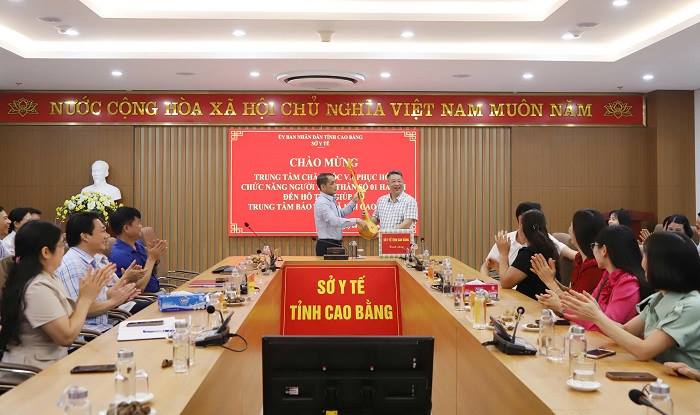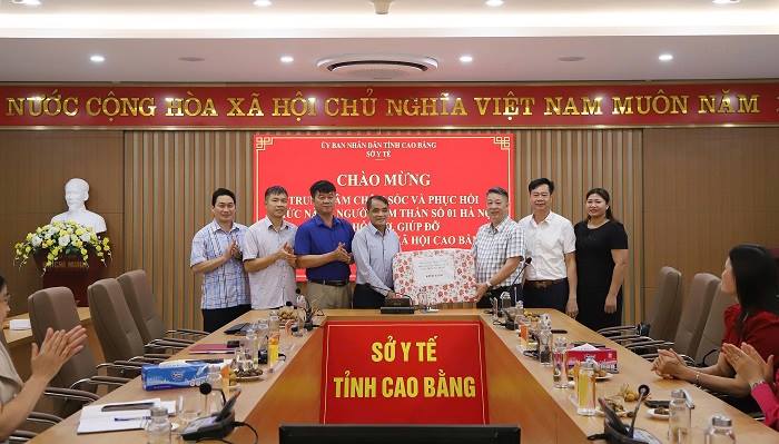 Đoàn công tác Trung tâm Chăm sóc và Phục hồi chức năng người tâm thần số 01 Hà Nội tặng quà Sở Y tế Cao Bằng.