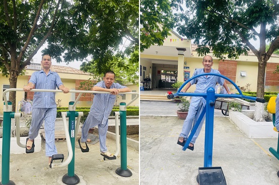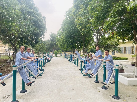 Việc trang bị các máy tập thể dục thể thao ngoài trời đã mang lại nhiều hiệu quả, thu hút được sự tham gia đông đảo của người bệnh, tạo điều kiện thuận lợi cho người bệnh rèn luyện sức khỏe mỗi ngày. Các thiết bị tập đa dạng về chủng loại như: máy tập đạp xe kết hợp quay tay, máy tập toàn thân, máy tập chạy bộ, máy lắc eo đôi ngoài trời, máy tập tay vai đôi ngoài trời, … đem đến nhiều sự lựa chọn cho người bệnh, đảm bảo phù hợp với nhu cầu, sở thích và thể trạng bệnh của từng đối tượng. Tập thể dục ngoài trời không chỉ giúp cho bệnh nhân thư thái hơn mà còn giúp bệnh nhân có cơ hội được giao lưu, chuyện trò với những bệnh nhân khác.