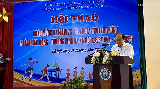 Tại chương trình, đồng chí Nguyễn Tây Nam – Phó Giám đốc Sở Lao động -Thương binh và Xã hội Hà Nội, Trưởng ban tổ chức Hội thao tặng hoa chúc mừng các đội thi và phát biểu Khai mạc Hội thao. Hội thao là hoạt động thiết thực ý nghĩa và được tổ chức thường xuyên không chỉ hướng tới chào mừng ngày truyền thống của ngành Lao động – Thương binh và Xã hội, đây còn là dịp tăng cường tinh thần đoàn kết giữa các đơn vị trong ngành, thi đua hoàn thành nhiệm vụ được giao. Hơn nữa hoạt động đẩy mạnh phong trào thể dục thể thao góp phần tăng cường sức khỏe và tinh thần cho cán bộ, công chức, viên chức, người lao động trong ngành. Đồng chí mong muốn các vận động viên với bản lĩnh và tinh thần đoàn kết sẽ phát huy tốt truyền thống của ngành thi đấu trung thực, cao thượng, trách nhiệm, nhiệt huyết, hiệu quả thiết thực chào mừng kỷ niệm 78 năm ngày truyền thống ngành Lao động – Thương binh và Xã hội (28/8/1945 – 28/8/2023).