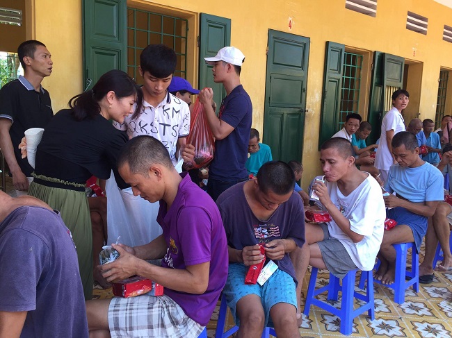 Các thành viên đoàn từ thiện đến các tổ chăm sóc, điều trị thăm hỏi, động viên tặng 71 phần quà gồm khăn mặt, xà phòng thơm cho các cán bộ làm công tác chăm sóc bệnh nhân và trực tiếp phát tặng 580 phần quà gồm: bánh chưng, giò, sữa hút, bánh kẹo…cho từng người bệnh.