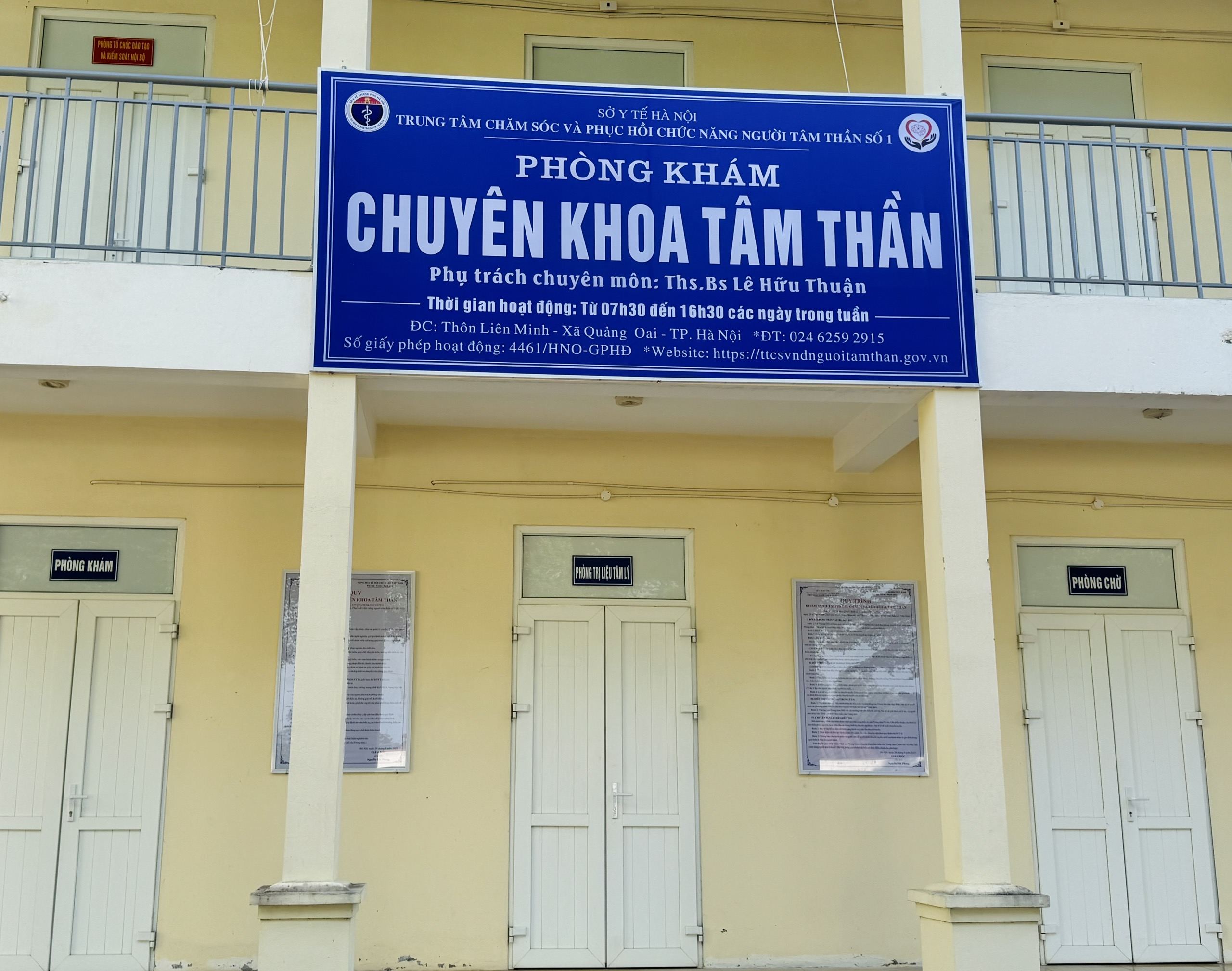 Phòng khám chuyên khoa tâm thần được Sở Y tế Hà Nội cấp phép hoạt động theo số 4461/HNO-QGHĐ, trực thuộc Trung tâm Chăm sóc và Phục hồi chức năng người tâm thần số 1 Hà Nội. Tại đây, người bệnh được khám, tư vấn, điều trị ngoại trú các rối loạn như: trầm cảm, lo âu, mất ngủ, rối loạn hành vi, tâm thần phân liệt, rối loạn cảm xúc, nghiện chất, sa sút trí tuệ… cùng nhiều vấn đề tâm lý khác.