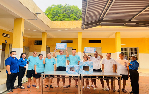 Đại diện BCH Đoàn Thanh niên trao quà cho các đội chơi nhiệt tình tham gia hoạt động