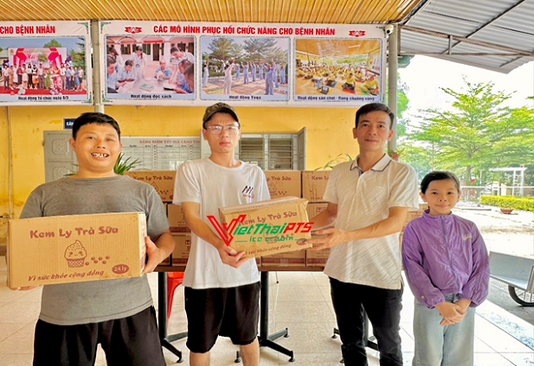 Kết thúc chuỗi ngày hoạt động hết công suất với các hoạt động văn hoá thể thao sôi nổi, người bệnh tại Trung tâm không khỏi bất ngờ và mừng rỡ khi được thưởng thức cốc kem mát lạnh đến từ tấm lòng hảo tâm của Nhà phân phối kem Dương Huyền tại xã Thuỵ An – Ba Vì – Hà Nội. Món quà tuy nhỏ nhưng rất thiết thực và ý nghĩa với người bệnh trong ngày hè nóng nực, mang lại cảm giác sảng khoái, phấn chấn cho người bệnh sau khi tham gia các hoạt động vui chơi sôi nổi.