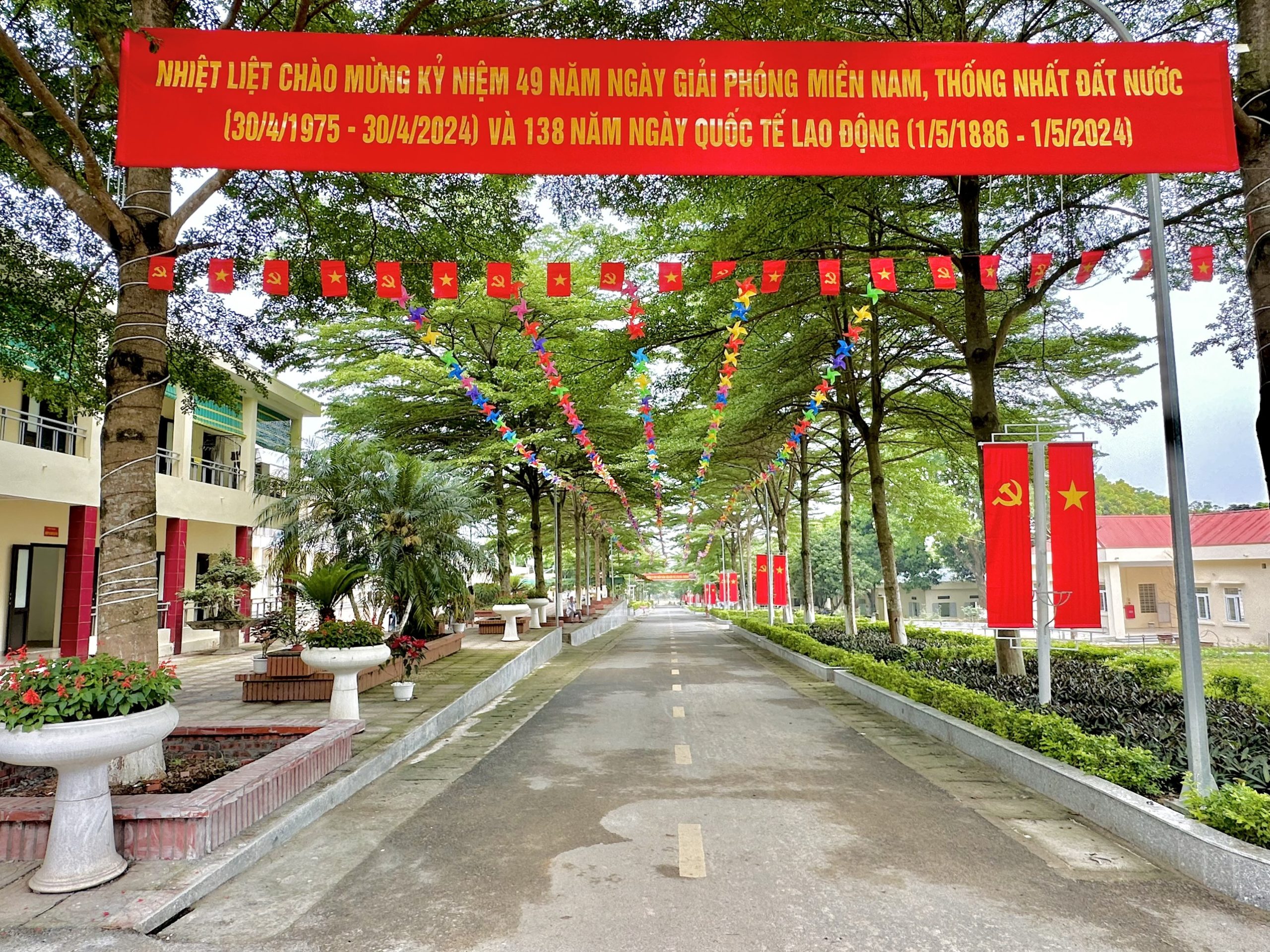Ngay từ những ngày giữa tháng 4, Ban Giám đốc Trung tâm đã chỉ đạo gấp rút việc trang trí cảnh quan, treo bangzon, khẩu hiệu tuyên truyền cho dịp lễ. Những chiếc chong chóng đa màu sắc quay tít dưới hàng cây bàng xanh mướt, những lá cờ Đảng, cờ Tổ Quốc đỏ rực hai bên trục đường chính tung bay phấp phới sẵn sàng chào mừng sự kiện trọng đại của cả nước và tiếp đón người dân đến thăm quan, làm việc tại đơn vị.