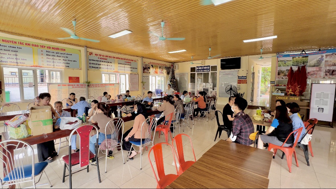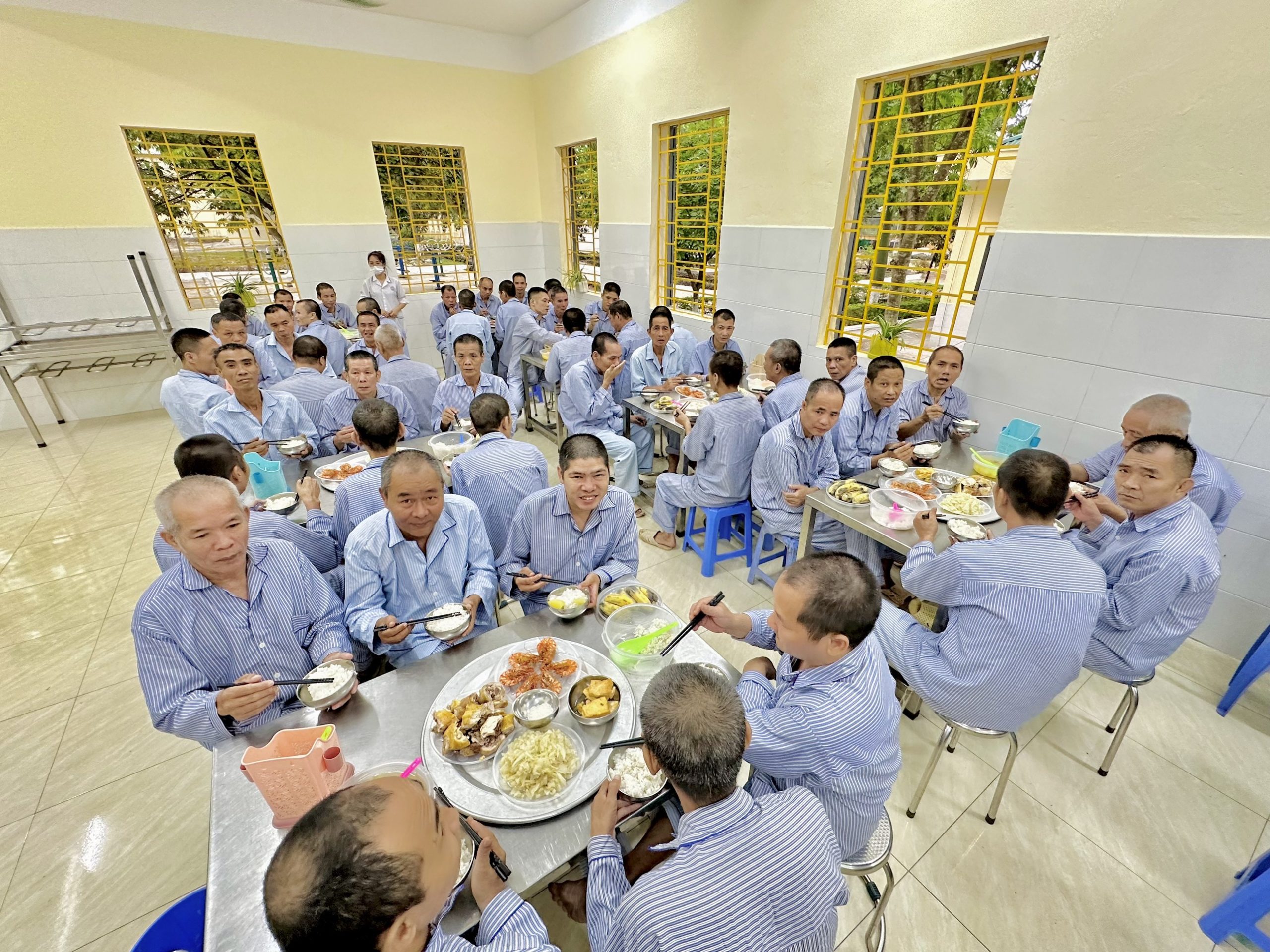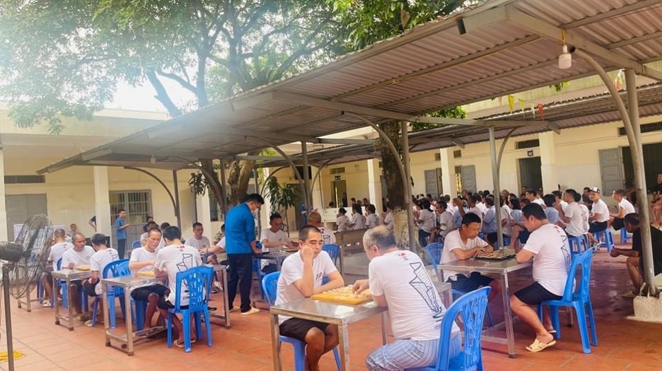 Bên cạnh các hoạt động về thể chất, Ban Giám đốc Trung tâm cũng đã chỉ đạo chế biến một bữa cỗ trong dịp lễ thể hiện sự quan tâm về đời sống tinh thần cho người bệnh. Dưới cái nắng oi bức 40 độ, cộng thêm hơi nóng của lửa, của dầu mỡ bốc lên… cũng không làm mệt những đôi bàn tay chặt gà, chiên tôm…thoăn thoắt, khéo léo của cán bộ phòng Chế độ dinh dưỡng để kịp cho ra mâm cơm ngon, cải thiện hơn mọi ngày cho bệnh nhân. Ngồi vào mâm cơm, bệnh nhân ai nấy đều phấn khởi, ngon miệng, vừa ăn vừa trò chuyện rôm rả như đang được ngồi bên mâm cơm ngày Tết cùng gia đình, bè bạn.