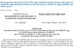 Kế hoạch thực hiện Chỉ thị 05-CT/TW, ngày 15/5/2016 của Bộ chính trị; Kế hoạch số 03-KH/TW, ngày 25/7/2016 của Ban bí thư; Kế hoạch số 18-KH/TU, ngày 01/9/2016 của Thành uỷ về