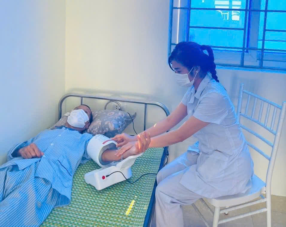 Y sĩ phòng khám thực hiện đo huyết áp cho người bệnh