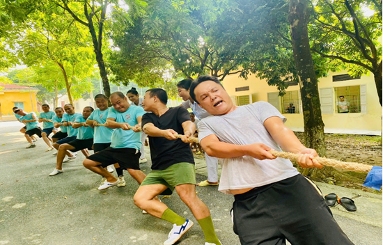 Buổi chiều cùng ngày là phần thi kéo co đầy kịch tính, quyết liệt của các đội thi. Ba đội thi đều hào hứng cố gắng hết sức trong tiếng reo hò, cổ vũ nhiệt tình của khán giả làm cho không khí càng trở nên náo nhiệt, thể hiện ý trí quyết tâm chiến thắng của mỗi đội thi. Kết thúc cuộc thi giải Nhất thuộc về đội số 1(bệnh nhân thuộc Phòng Y tế – PHCN và Tổ B3), giải Nhì thuộc về đội số 2 (bệnh nhân thuộc Tổ A2 và Tổ B1) và giải Ba thuộc về đội số 3 (bệnh nhân thuộc Tổ B4 và Tổ B5).