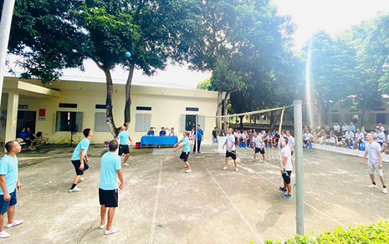 Hoạt động tiếp theo trong chuỗi ngày nghỉ lễ là Giao lưu bóng chuyền hơi được tổ chức vào ngày 2/9. Ban Tổ chức thành lập 3 đội chơi, mỗi đội gồm 5 vận động viên nam: Đội số 1 (bệnh nhân thuộc Phòng Y tế – PHCN và Tổ B3), đội số 2 (bệnh nhân thuộc Tổ A2 và Tổ B1), đội số 3 (bệnh nhân thuộc Tổ B4 và Tổ B5).