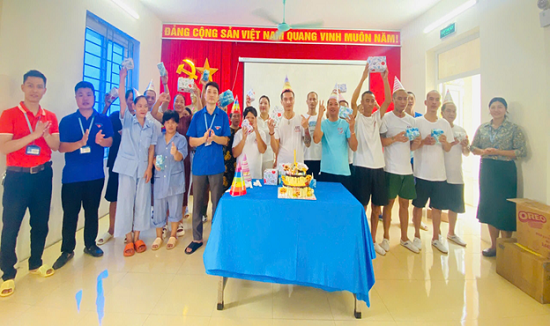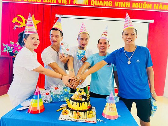Kết thúc chuỗi hoạt động trong những ngày nghỉ lễ, các doàn viên thanh niên đã tổ chức sinh nhật quý 3 cho người bệnh có ngày sinh trong quý. Đây cũng là một hoạt động có ý nghĩa nhân văn cao cả, thể hiện sự quan tâm của đơn vị đến người bệnh. Với khuôn mặt vui tươi, phấn khởi đón ngày sinh nhật của mình, anh T chia sẻ: “Ở nhà tôi chưa bao giờ được tổ chức sinh nhật, vào Trung tâm được các cô chú, anh chị tổ chức sinh nhật nên rất vui, cảm thấy mình được quan tâm như là ở gia đình“.