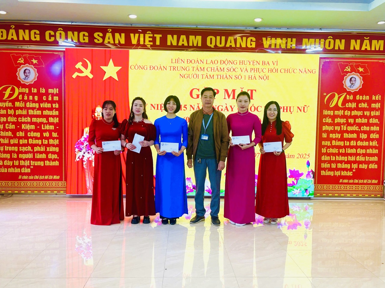 Thực hiện Kế hoạch số 181/KH-CĐTTCS&PHCNNTTS1, ngày 10/02/2025 của Công đoàn Trung tâm Chăm sóc và Phục hồi chức năng người tâm thần số 1 Hà Nội về tổ chức các hoạt động Kỷ niệm ngày Quốc tế Phụ nữ 8/3. Được sự nhất trí của Đảng ủy – Ban Giám đốc Trung tâm, trong hai ngày 06 – 07/3/2025, Ban Chấp hành Công đoàn Trung tâm Chăm sóc và Phục hồi chức năng người tâm thần số 1 Hà Nội tổ chức chương trình gặp mặt 8/3 và nhiều hoạt động sôi nổi ý nghĩa nhằm tôn vinh giá trị của người phụ nữ, ôn lại những kỉ niệm hào hùng mà một nửa thế giới đã làm nên trong lịch sử, mang lại nguồn động viên tích cực cho nữ cán bộ đơn vị.