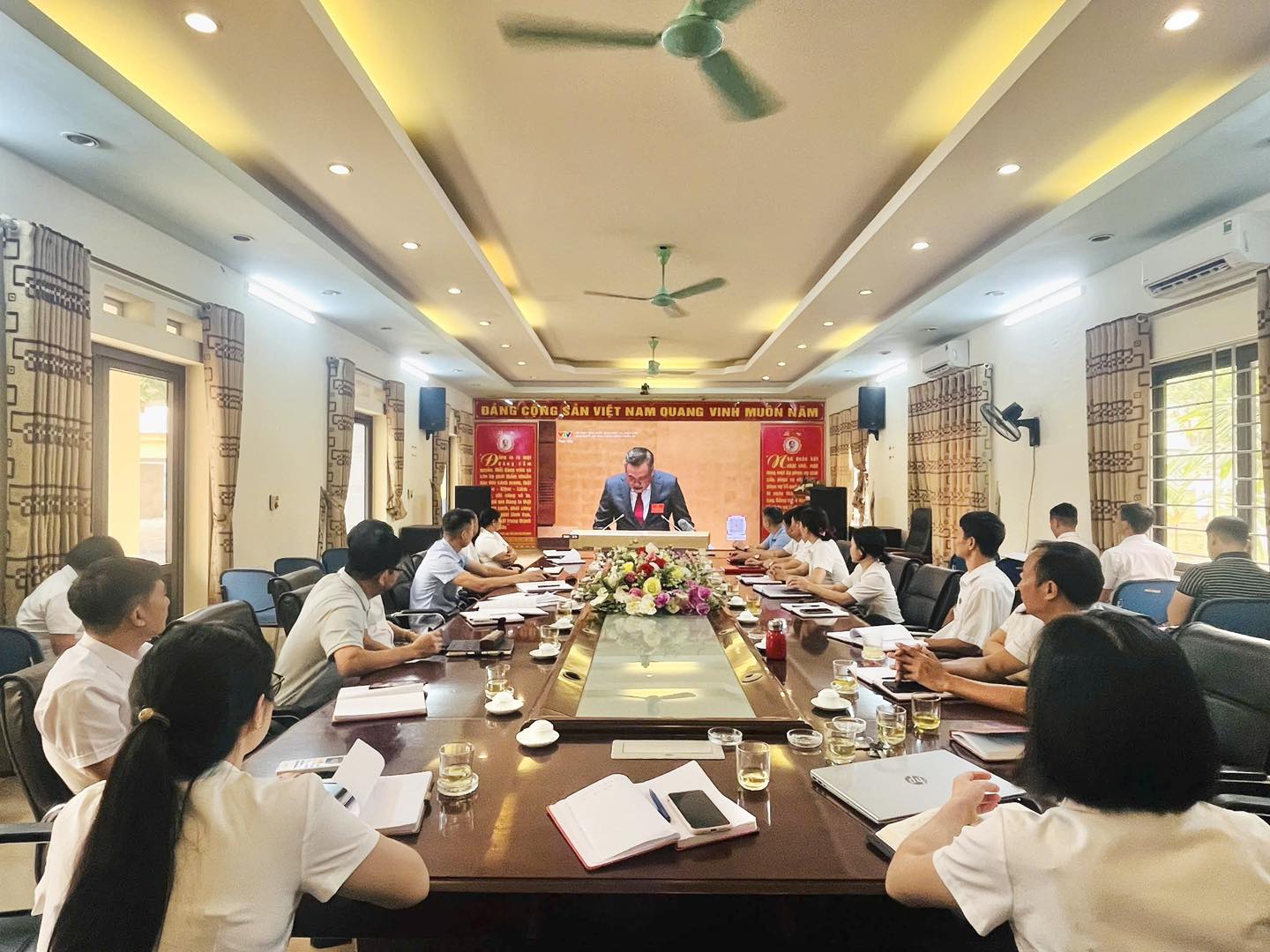 Với tinh thần chủ động, nghiêm túc, Trung tâm đã tổ chức triển khai theo dõi hội nghị tại nhiều điểm cầu nhằm đảm bảo toàn thể cán bộ đều được tiếp cận đầy đủ nội dung. Tại hội trường chính, các cán bộ chủ chốt từ cấp tổ trở lên tham dự, tập trung theo dõi và ghi chép các nội dung quan trọng. Tại 11 tổ điều trị, cán bộ trực cùng các đối tượng có đủ điều kiện sức khỏe đã cùng theo dõi chương trình. Đối với cán bộ đang làm việc từ xa hoặc tại khu vực lưu trú, đơn vị yêu cầu chủ động theo dõi qua thiết bị cá nhân để đảm bảo không bỏ sót thông tin.