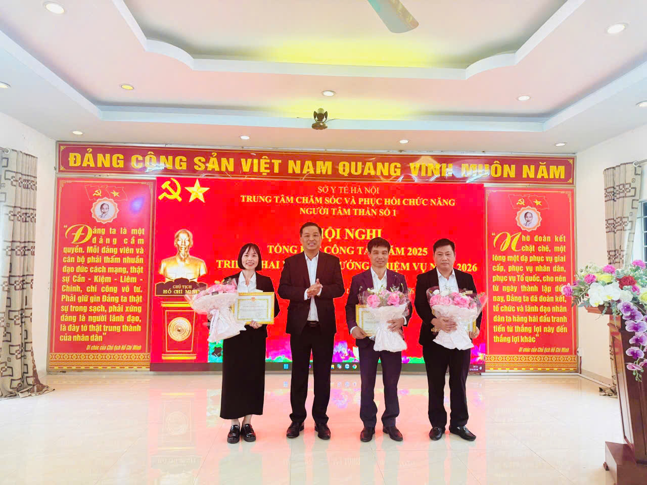 Hội nghị tổng kết công tác năm 2025 của Trung tâm Chăm sóc và Phục hồi chức năng người tâm thần số 1 Hà Nội diễn ra thành công tốt đẹp. Với tinh thần đổi mới, trách nhiệm và quyết tâm cao, tập thể cán bộ, viên chức, người lao động Trung tâm thống nhất ý chí, chung sức đồng lòng, phấn đấu hoàn thành thắng lợi các mục tiêu, nhiệm vụ năm 2026 đã đề ra, góp phần nâng cao chất lượng chăm sóc sức khỏe tâm thần và bảo đảm an sinh xã hội trên địa bàn Thủ đô.